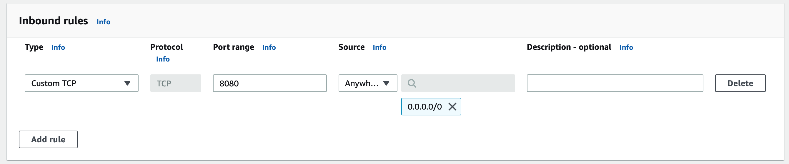 만약, EC2에서 Jenkins를 설치하신다면 외부에서 Jenkins 접속을 위해서 Security group의 인바운드 규칙 설정을 통해 8080 포트를 열어주셔야 합니다.