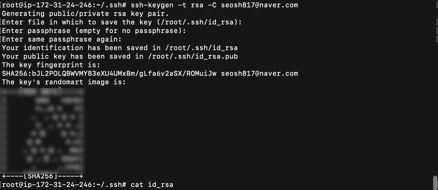 ssh-keygen 명령어로 ssh 키를 생성해줍니다.