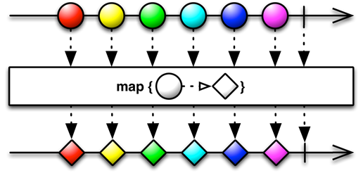 map은 스트림의 데이터를 다른 형태로 바꿀 때 사용하는 연산자입니다. flatMap, concatMap, switchMap과는 다르게 Observable을 더 추가로 만들거나 하지 않습니다.
