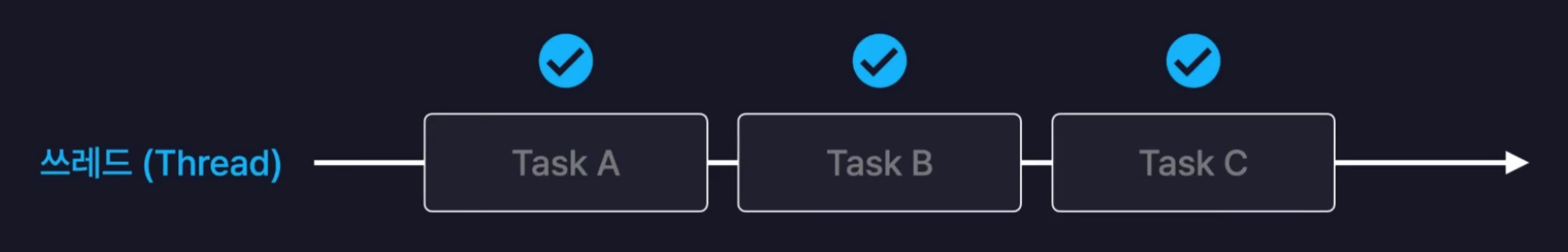 즉, Task A, Task B, Task C가 있다고 가정한다면, Task A가 종료되면 Task B가 실행되고, Task B가 종료되면 Task C가 실행되고 최종적으로는 순서대로 완료하는 흐름으로 표현할 수 있다.